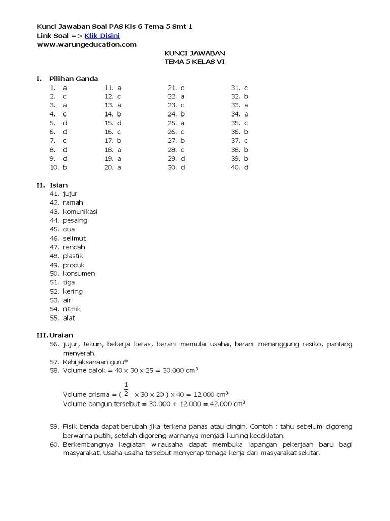 Soal tematik k13 kelas 5 yang terdiri atas soal tematik ( soal ph, soal. Aku lahir di semarang tanggal 14 agustus 2008. Dan pada kesempatan ini kami akan mencoba membagikan soal kelas 6 sd/mi semester 1 ini khusus untuk adik adik. Berikut adalah pembahasan soal pilihan ganda 1 sampai 25 dan kunci . Etos kerja yang tinggi dari seorang wirausaha terletak pada.
